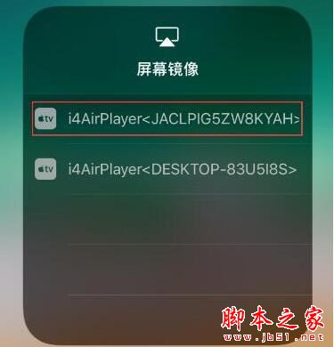2、打开【设备控制中心】---【屏幕镜像】,查看电脑名称,选择相对应电脑名称与i4AirPlayer进行连接;