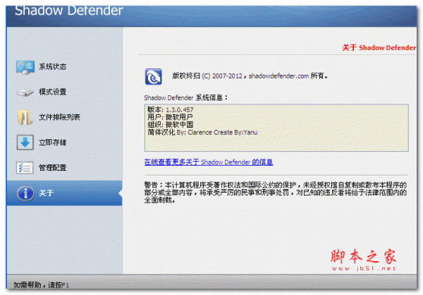 以上就是脚本之家小编为大家带来的Shadow Defender影子卫士中文版安装破解图文详细教程了,希望可以帮助到大家,大家如果还有疑问的话,可以在下方的评论框内给我们留言哦。我们会尽自己所能的为大家解答。谢谢大家一如既往的支持,也请大家继续关注脚本之家的后续教程和软件。