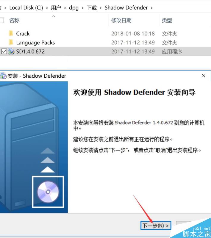 1、在本站下载Shadow Defender中文破解版及Shadow Defender注册机,之后进行解压,双击D1.4.0.672_Setup.exe开始安装,