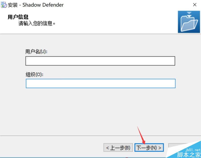 4、输入用户名和组织,大家随意输入即可,如:(用户名:www.jb51.net;组织:脚本之家;)这样,之后继续“下一步”,