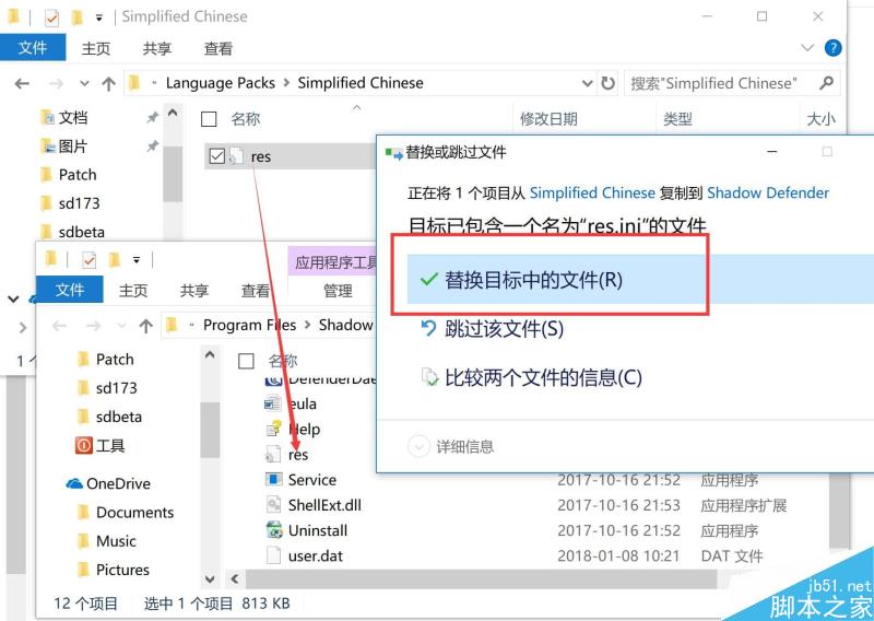 9、重启计算机后,先不要打开Shadow Defender,而是在压缩包里找到Simplified Chinese文件夹内的res.ini文件,将其复制粘贴到Shadow Defender的安装目录下,默认在C:\Program Files\Shadow Defender,将原来的res.ini文件替换掉即可。这一步是为了让Shadow Defender显示中文界面,否则的话,Shadow Defender将显示英文界面。