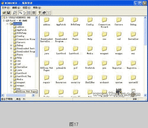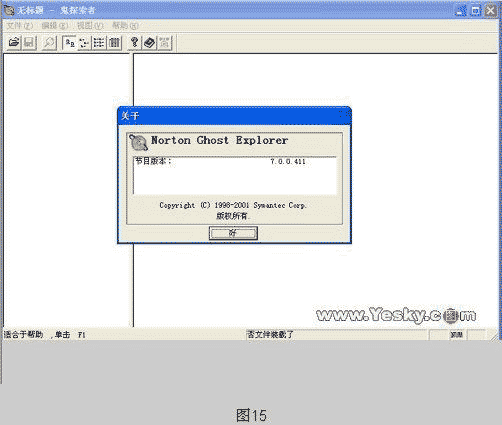 *.GHO是Ghost制作映像文件时的默认扩展名,假如你想恢复映像文件中的部分内容,那么就只能选择完全恢复,不过这实在是太麻烦了。而且Norton Ghost简化版只能工作于纯DOS模式下,这样操作起来未免有很多不便,不过有了Ghost Explorer,就轻松多了。它能将做好的镜像文件读出并展开,然后你就可以像对硬盘分区操作一样,对里面的任一文件进行提取和删除,而且整个过程都在Windows下完成。这样,你就不用因为系统分区只是有少数几个文件损坏了、被覆盖了,也要把整个分区都覆盖一遍了。(如图15)