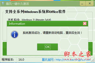 以上就是小编为大家带来的暴风一键永久激活 (windows/office激活工具)的使用教程,希望能对您有所帮助,小伙伴们有空可以来脚本之家网站,我们的网站上还有许多其它的资料等着小伙伴来挖掘哦!