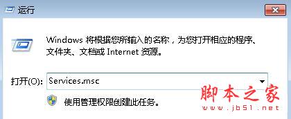 2、接着打开win7旗舰版系统中的运行对话框,然后输入services.msc,回车打开服务;