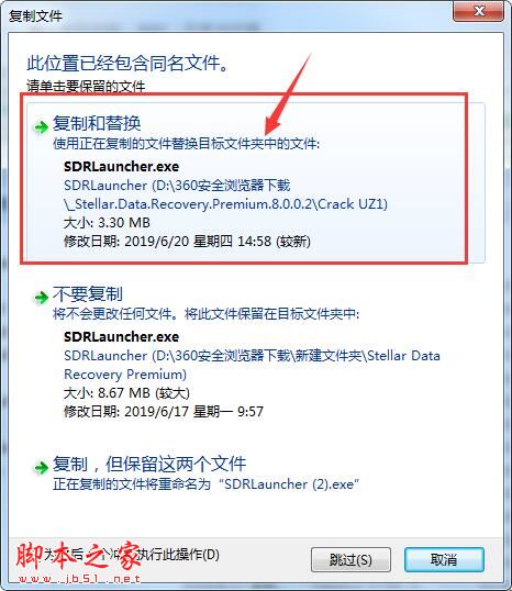 3.复制到安装目录会出现此弹窗,选择“复制和替换”,以为有五个补丁,所以需要用户点击5次。