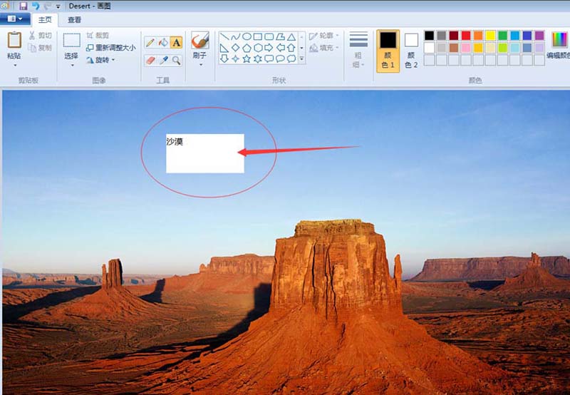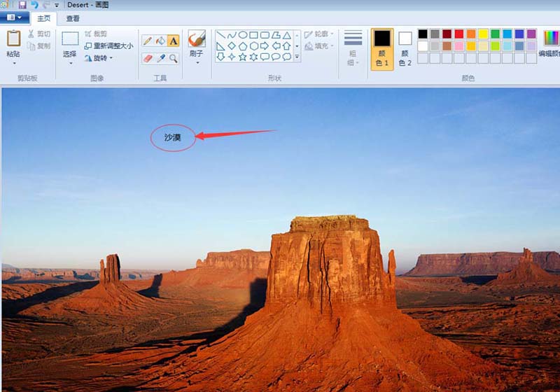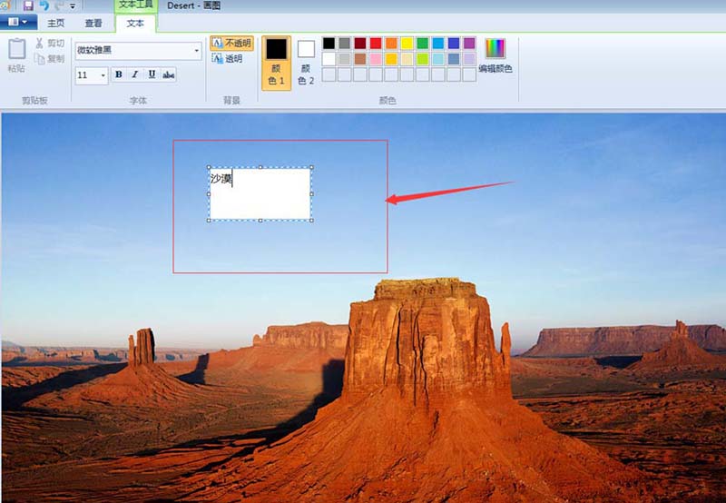6、给这幅画输入说明性标题文字,如”沙漠“;