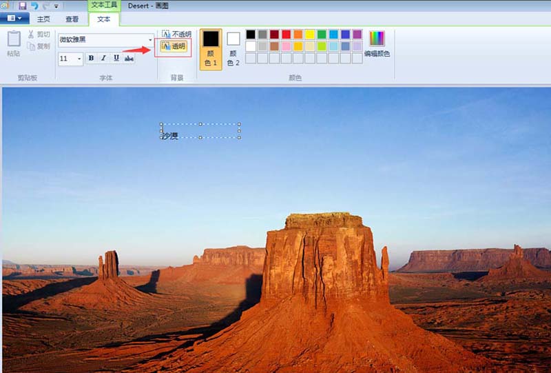 7、发现沙漠二字背景是白色的,将底图遮挡了一部分,影响了整体的谐调;