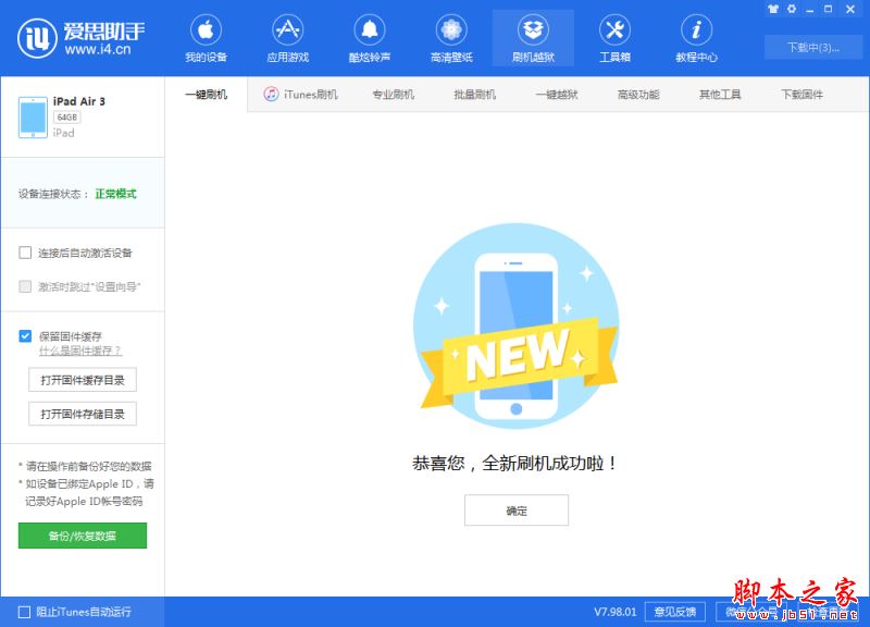 以上便是脚本之家小编为大家分享的关于使用爱思助手一键刷机iOS 12.4正式版图文教程,希望能够帮到你,脚本之家持续发布更多资讯,欢迎大家的关注。