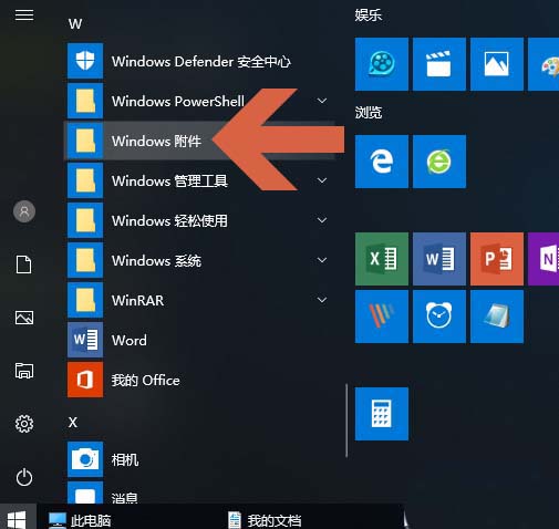 3、点击开始菜单中的【Windows附件】。