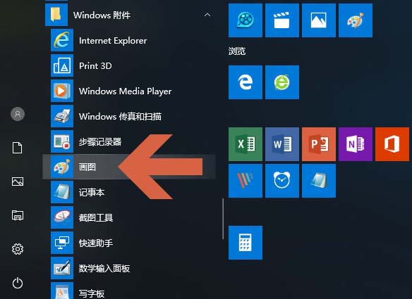 4、点击Windows附件中的【画图】。