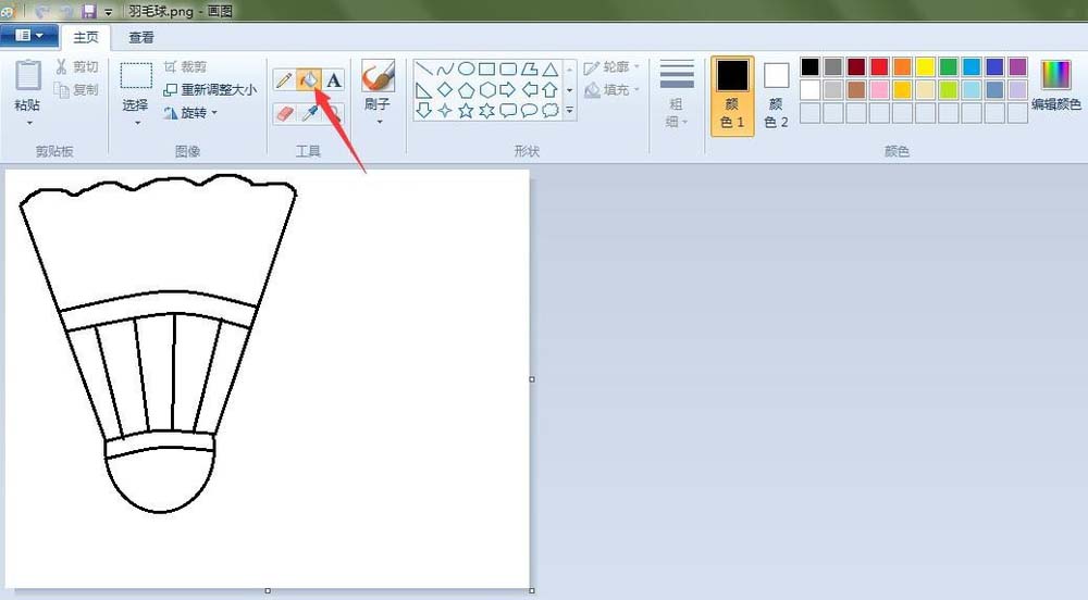 5、填充颜色:点击“用颜色填充”按钮,在羽毛球相应的地方填充上颜色。