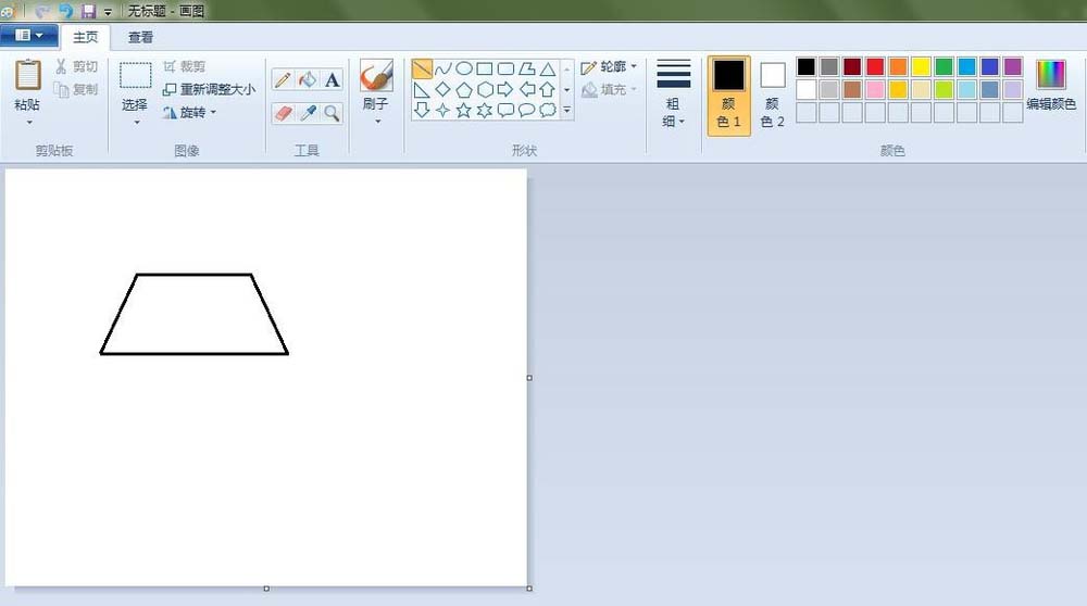 2、灯罩:点击“直形”按钮,线条粗细(第二个),先在“画纸”适当位置上画一个梯形作为灯罩。
