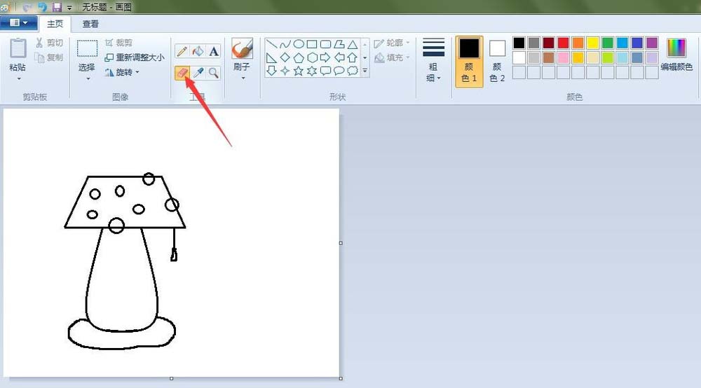 5、添加装饰:点击“椭圆形”按钮,在灯罩上画上一些圆;点击“橡皮擦”按钮,将画出的圆擦掉。