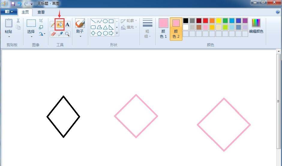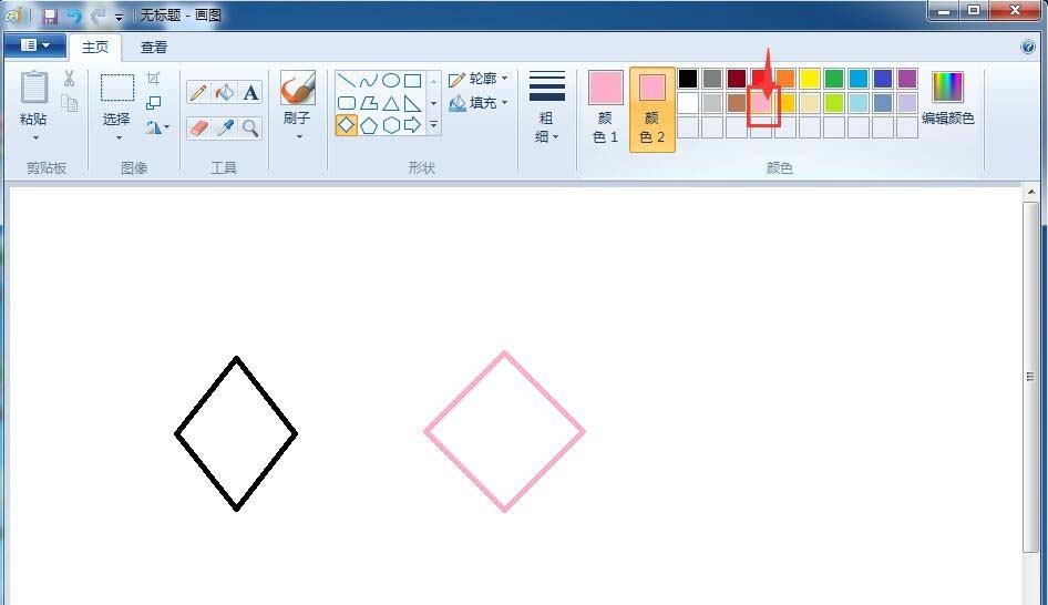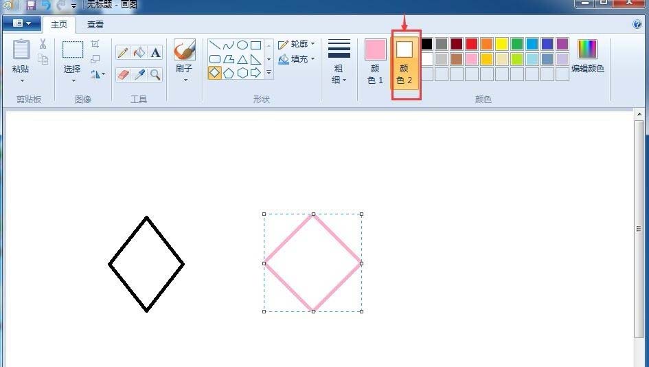 7、如果要给菱形内部也填充上这种粉色,该如何处理呢?我们点击一下颜色2;