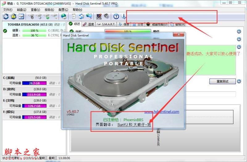 6、打开软件,点击关于,查看软件是否激活完毕。如图所示,提示“已注册给: PhoenixBBS”