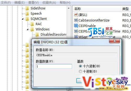 运行注册表,依次展开到HKEY_LOCAL_MACHINE\SOFTWARE\Microsoft\SQMClient\Windows,双击右侧对话框中的“CEIPEnable”并将其值修改为“0”.