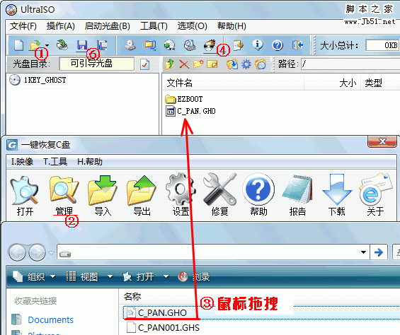 ③添加(拖拽)C_PAN.GHO到一键GHOST.ISO里(如果是DVD光盘,C_PAN001.GHS也一起添加进去吧)