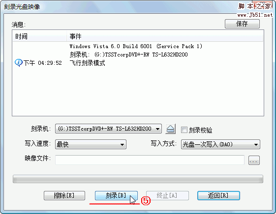 ⑤点击“刻录”按钮。。。等待直到刻录结束。