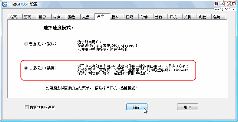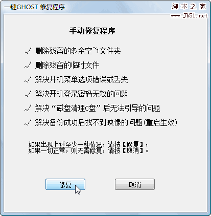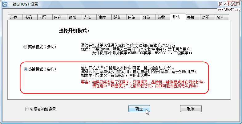 启动过程中将自动跳过3个额外菜单,直达一键备份或一键恢复警告对话框(10秒后自动执行)