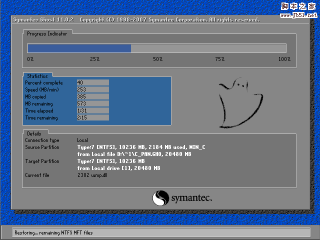出现GHOST窗口,进度条一点一点的移动,成功在向你招手^_^