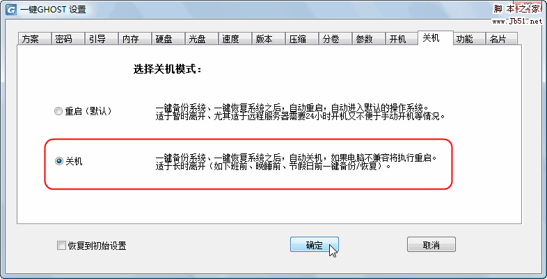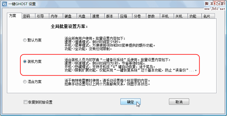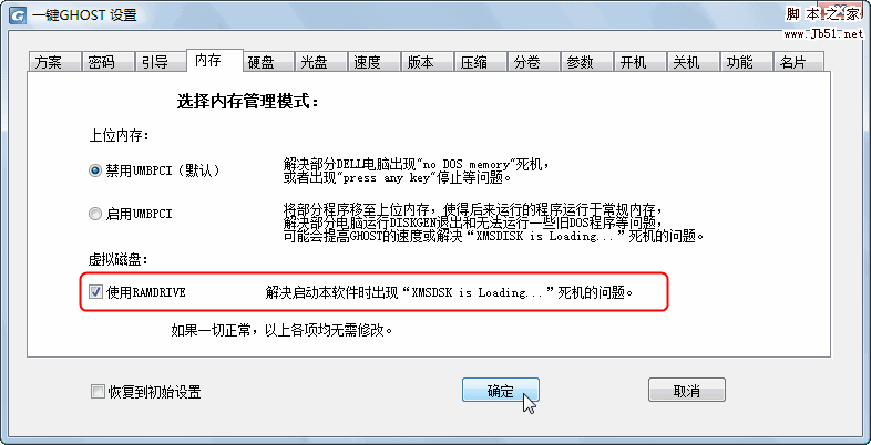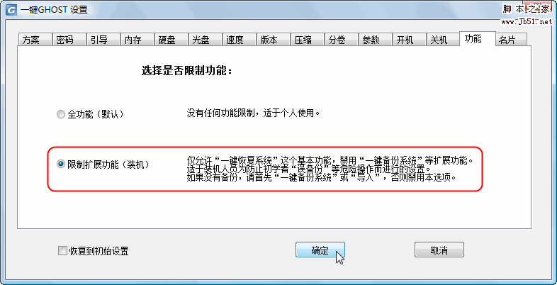 三、设置选项:(注意:正常情况下,不需要操作以下内容,菜鸟止步) 开始->程序->一键GHOST->一键GHOST->设置