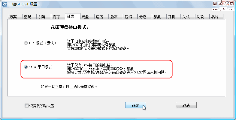 注意:如果是SATA串口硬盘,一般不需要设置BIOS,如果不能运行GHOST,