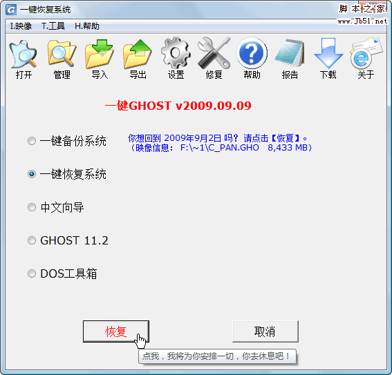 情况2、存在GHO,则出现"恢复"窗口: