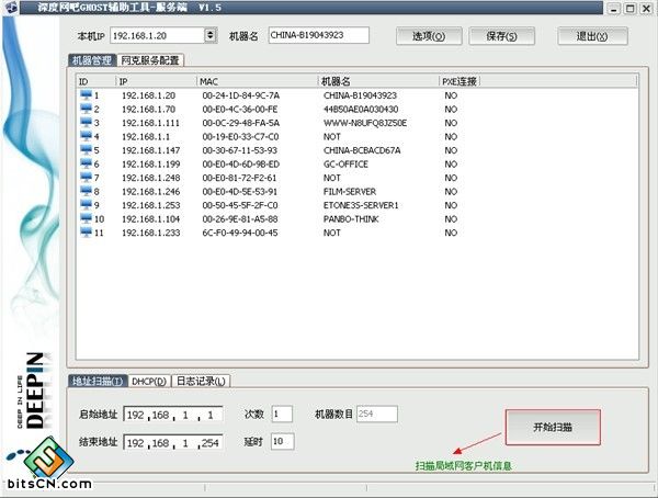 OK,再回到服务端机器管理,扫描一下, 客户机192.168.1.11 已经显示出来了 如图15.