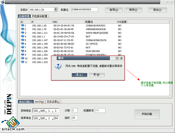 在信息不完整的情况下,会提示 信息不完整 可自行 修改.统一化.机器名,网关,DNS.信息 如图3,4