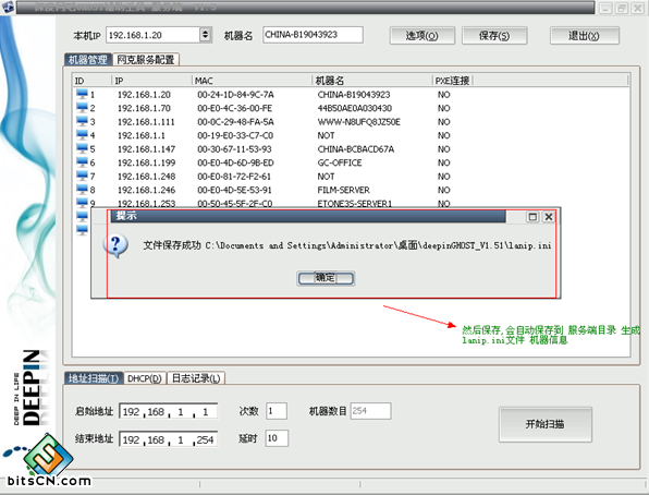 修改好信息确定 会保存到服务端位置,生成 lanip.ini 文件. 如图5.