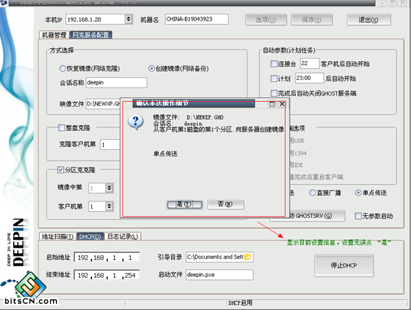显示当前设置,镜像文件名称,会话名称,由客户机第一个磁盘第一个分区,向服务器创建镜像 单点传送. 确定点 是 如图9