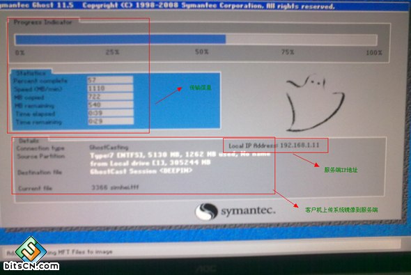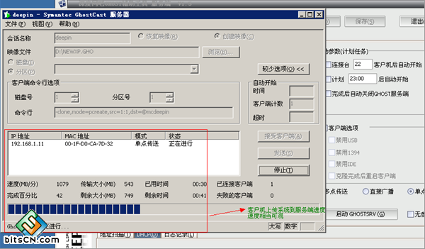 客户机将直接把第一个磁盘第一个分区.系统上传到服务器, 有传输信息,以及服务器IP 如图12