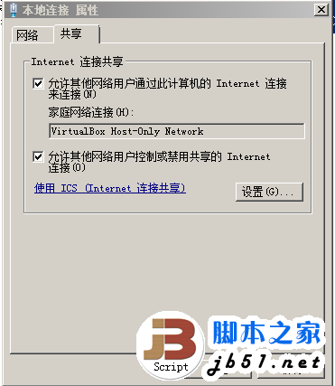 系统安装好之后,宿主机,也就是Windows系统也需要设置一下。打开控制面板—>网络和共享中心—>更改网络适配器设置,右键单击本地连接—>属性—>共享。配置如下图