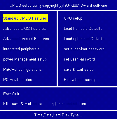1、开机按“Del”键进入CMOS,进入第一项“Standard CMOS Features”,回车.
