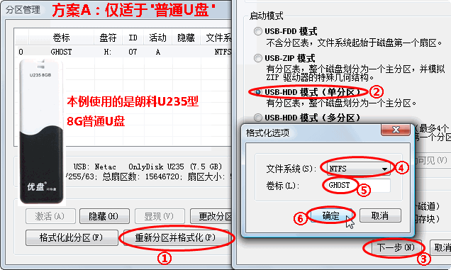 方案A:仅适于“普通U盘”或“读卡器+存储卡”,不适于“移动硬盘”。
