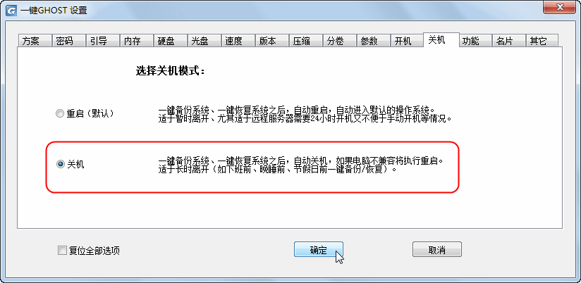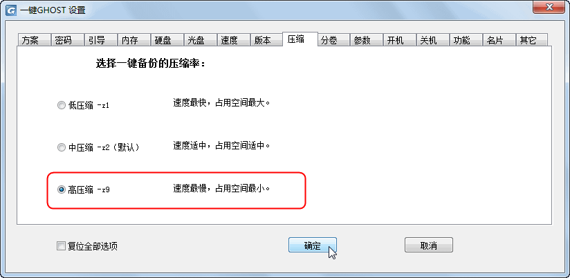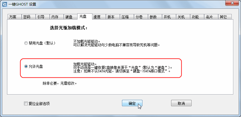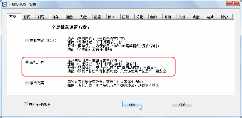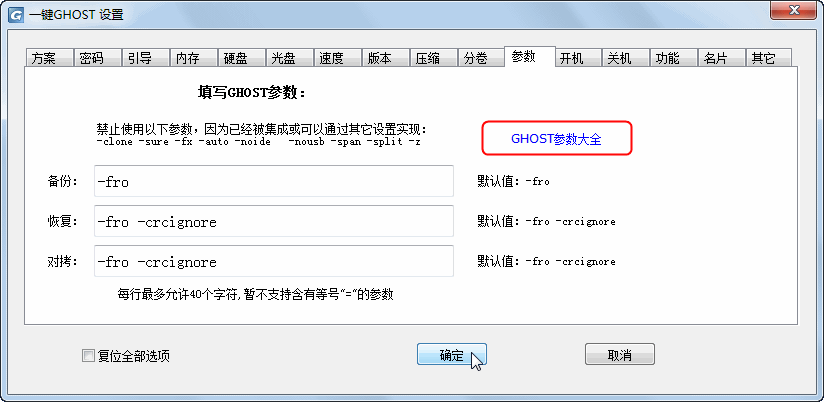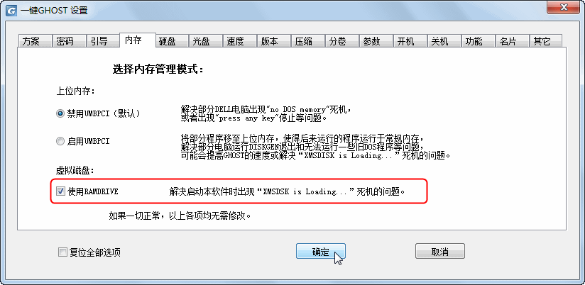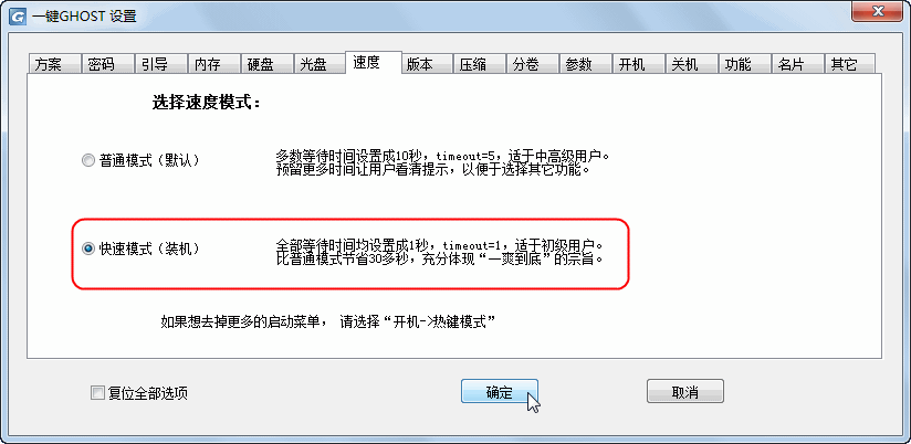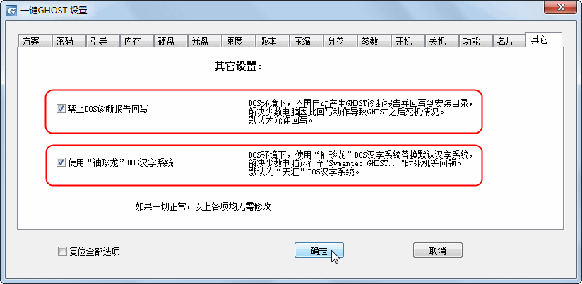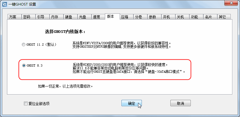 三、设置选项:(注意:正常情况下,不需要操作以下内容,菜鸟止步)开始->程序->一键GHOST->一键GHOST->设置