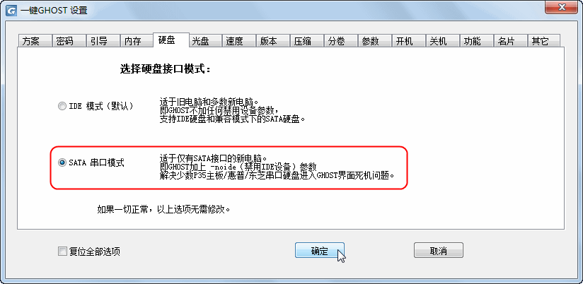 注意:如果是SATA串口硬盘,一般不需要设置BIOS,如果不能运行GHOST,