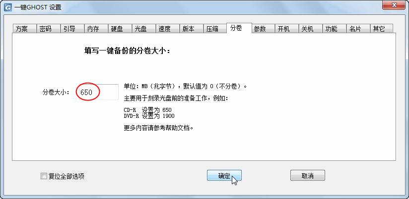 * 设置分卷大小 (详见“光盘版:高级刻录方法”)