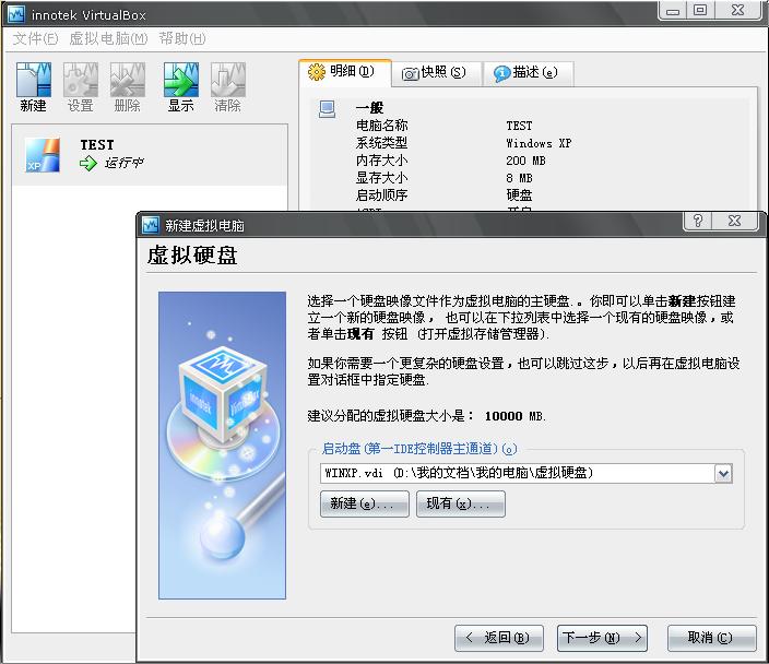 给虚拟电脑设置硬盘,就是在硬盘上划出一个区域给虚拟电脑使用,可选择位置,首次运行需-新建