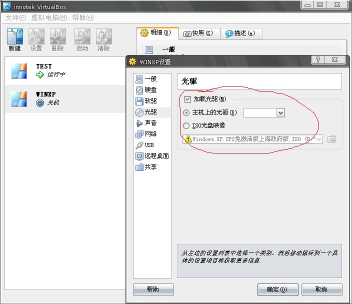 一般设置没什么好说的,重要的有两处,光驱和共享