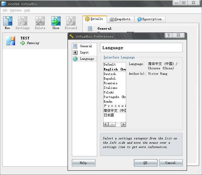 安装好VBOX后运行,首次运行好象是英文的,没关系,可以设置成中文,如下图选择设置