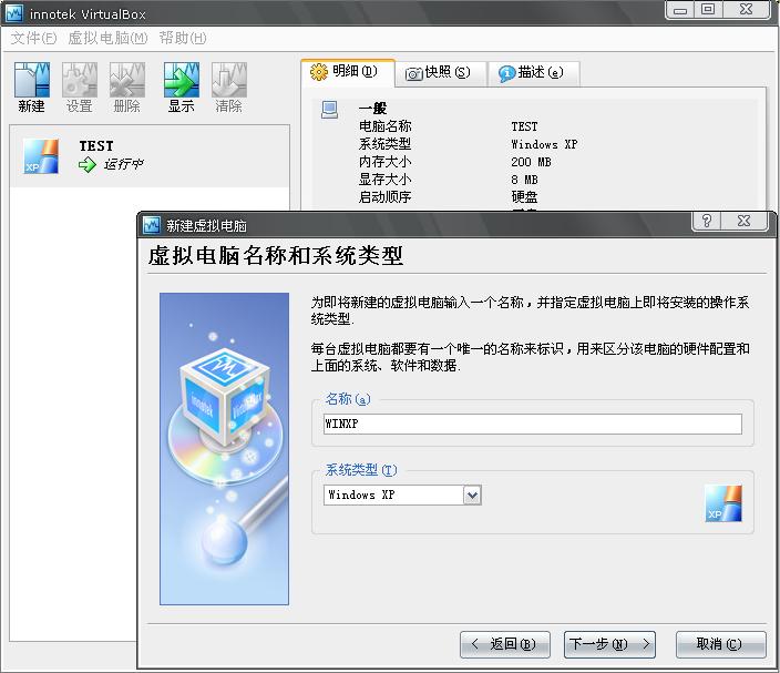 给虚拟电脑命名,并且选择将要安装的操作系统类型,在此以WINDOW XP为例,下一步