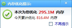 自动优化的整个过程不需要人工操作,更不影响电脑正常操作,只需要后台运行加速人生软件便可,可以说此功能更加的人性化。PS:如勾选不再提示按钮,优化结束便不会有任何的提示。