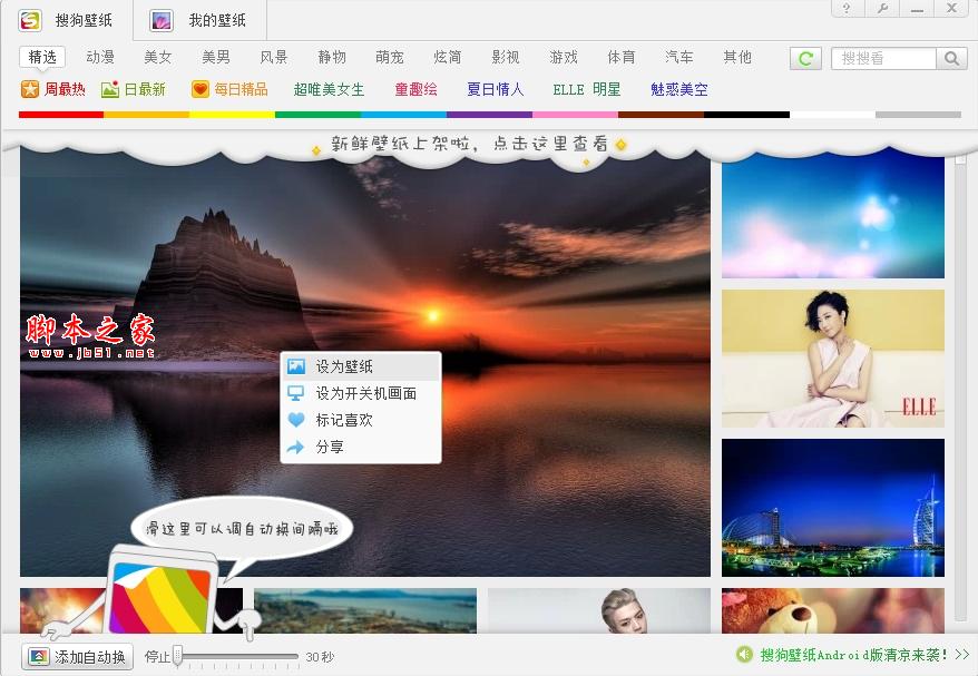 我们下一个壁纸软件最主要就是用它来换壁纸哦,搜狗壁纸换壁纸方法很简单,右键单击图片选择"设为壁纸"即可