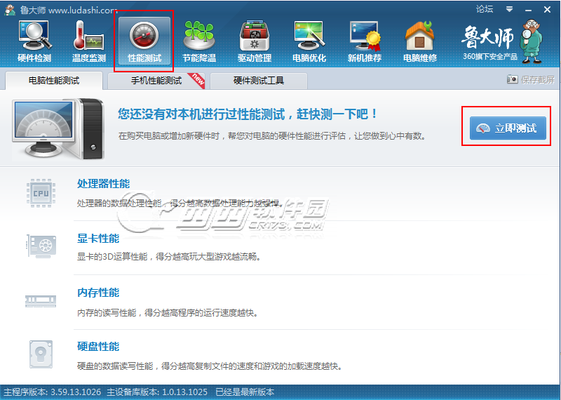 2、点击性能测试,进入跑分页面。