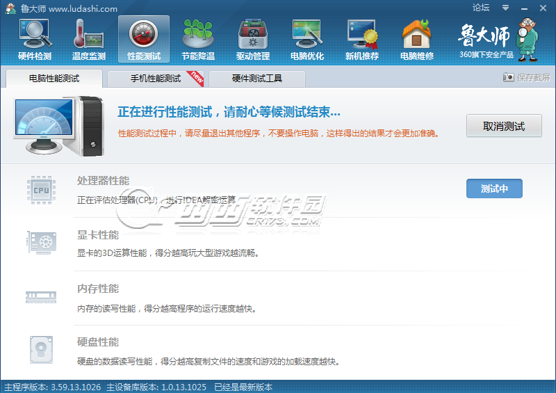 点击开始测试,测试过程会有点长,测试过程中不要开启其他程序,以免影响测试结果。