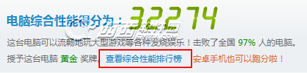 其实鲁大师这款软件的跑分只是作为一个大概的数据看看而已,真正的性能不能表现出太多,一定要做个比较的话可以在性能测试完毕后点击分数下面的查看综合性能排行榜看看自己的电脑性能在所有鲁大师用户中的排名情况。