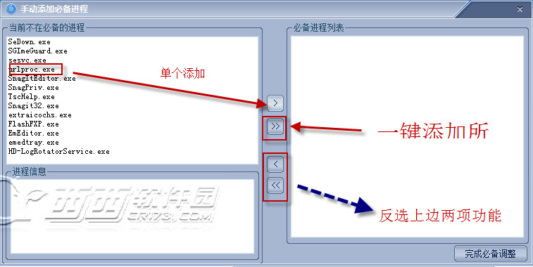你可以选择把需要的单个软件编辑到必备进程,也可以全部添加。