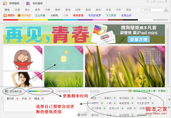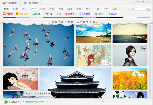 搜狗壁纸还有自动换的功能哦,就是程序左下角!自动换设置
