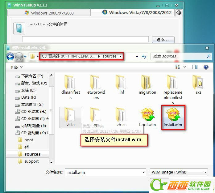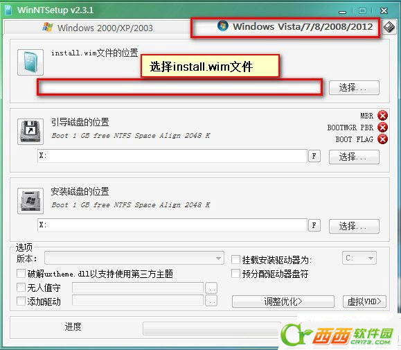 1.运行WinNTSetup硬盘安装器,选择install.wim文件